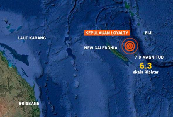 31 MAC : Gempa bumi kuat berukuran 6.5 pada skala Richter dikesan melanda tenggara Kepulauan Loyalty awal pagi ini.