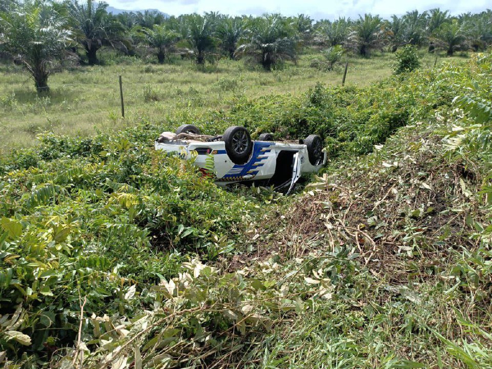 “Kemalangan dipercayai berlaku apabila pemandu kereta peronda gagal mengawal kenderaan ketika melalui selekoh akibat jalan licin kerana hujan. Akibatnya kenderaan itu terbabas ke kiri jalan dan terbalik. Penumpang kereta bagaimanapun tidak cedera,” katanya dalam kenyataan di sini, hari ini.