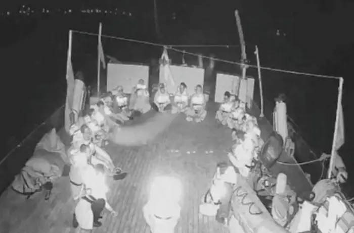 Kejadian itu disiarkan melalui rakaman kamera litar tertutup (CCTV) dalam kapal-kapal misi tersebut dengan tentera rejim yang lengkap bersenjata naik ke kapal.
