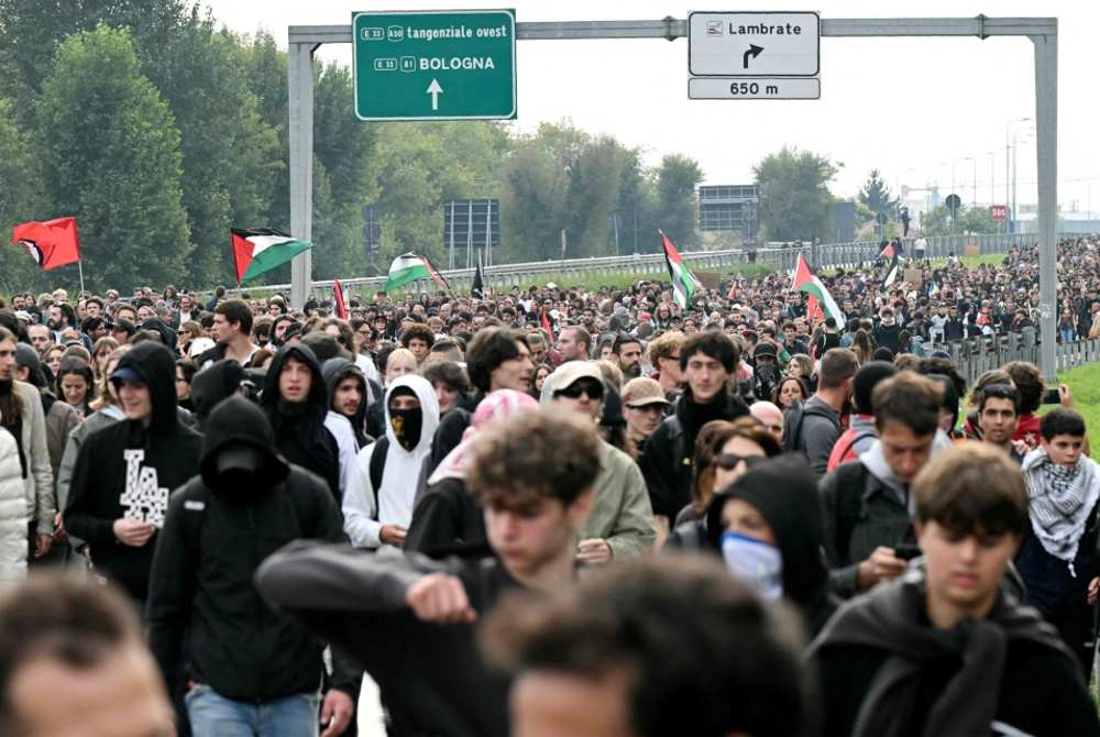 CGIL mendakwa 100,000 orang menyertai protes di Milan dengan penunjuk perasaan memenuhi Piazza Leonardo Da Vinci sambil mengibarkan bendera Palestin dan melaungkan slogan ‘Free Palestine’.