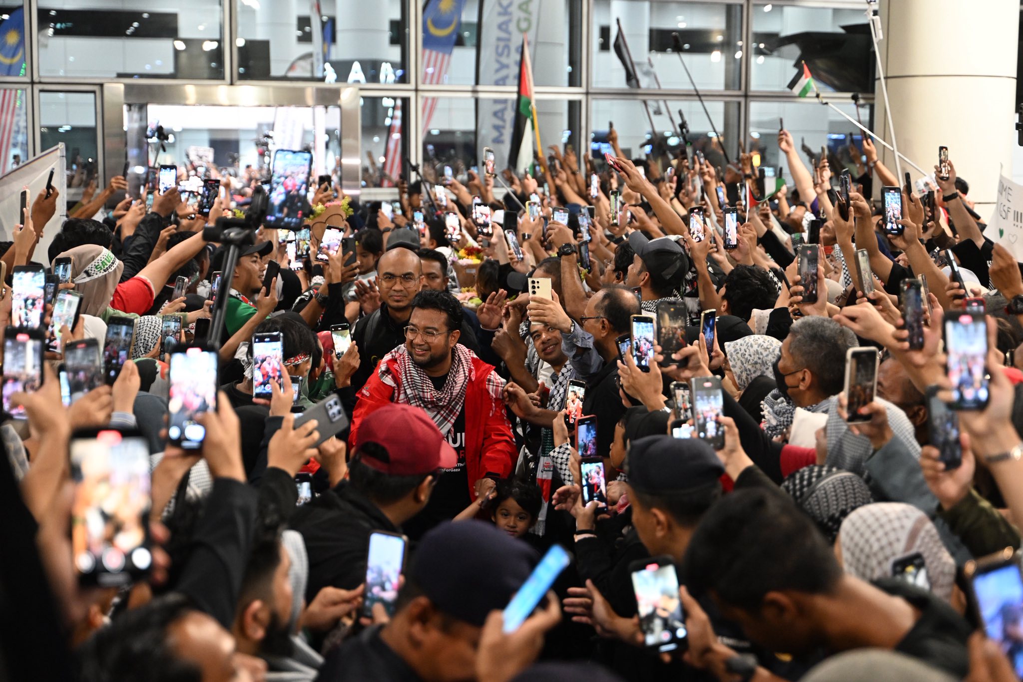 Ruang balai ketibaan dipenuhi keluarga dan penyokong yang hadir bagi menyambut kepulangan kesemua sukarelawan misi itu pada Majlis Sambutan Kepulangan Wira Sumud Nusantara Malaysia.
