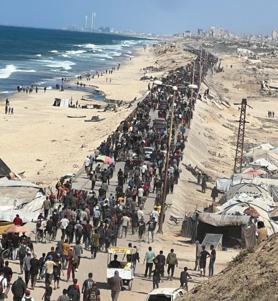 Ribuan keluarga melintasi jalan Al-Rashid yang rosak teruk, menunggang keldai, menaiki lori dan berjalan kaki sambil membawa barangan yang terselamat.