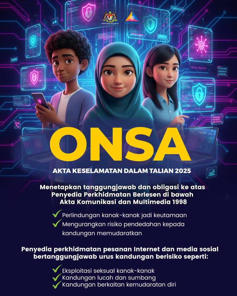 Maklumat lanjut mengenai ONSA boleh didapati di laman sesawang MCMC di https://www.mcmc.gov.my/ms/media/press-releases/faq-the-online-safety-act-2025-onsa .